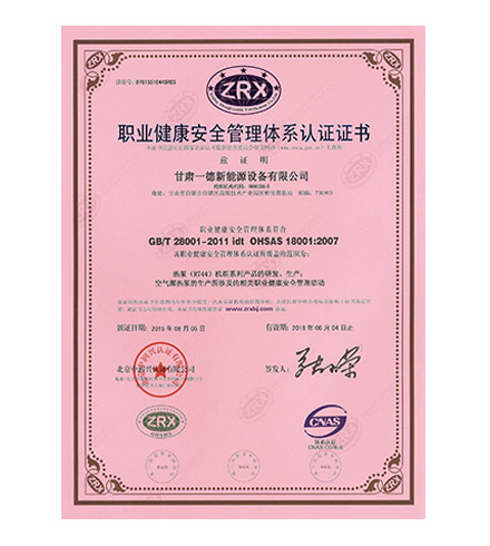 職業健康安全管理體系認證證書