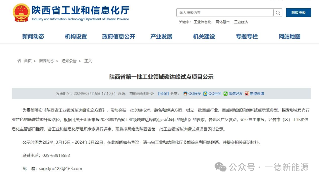 陜西省工業和信息化廳公布了